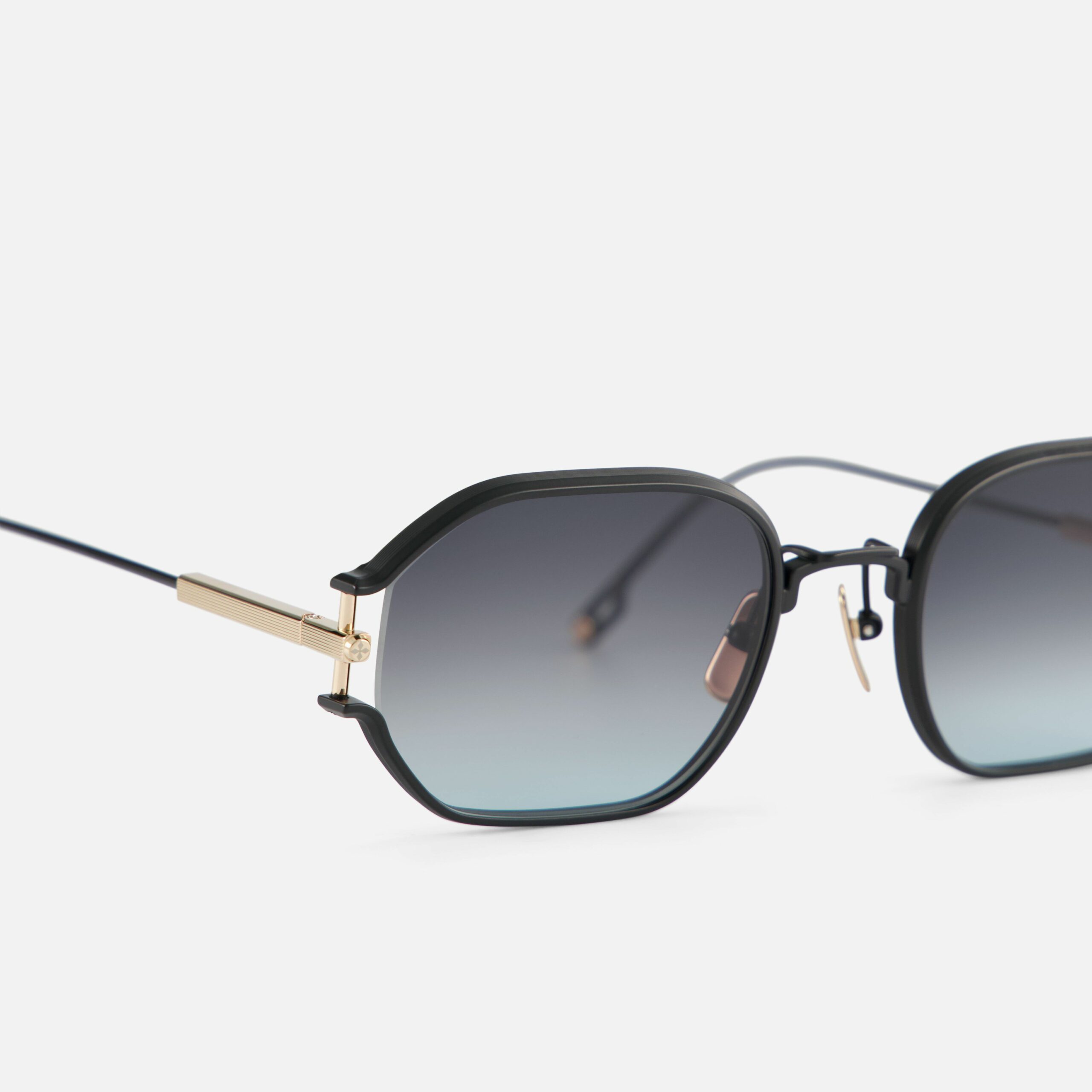 Black matte and Lunar gold titanium frame with custom temple and grey gradient lens.