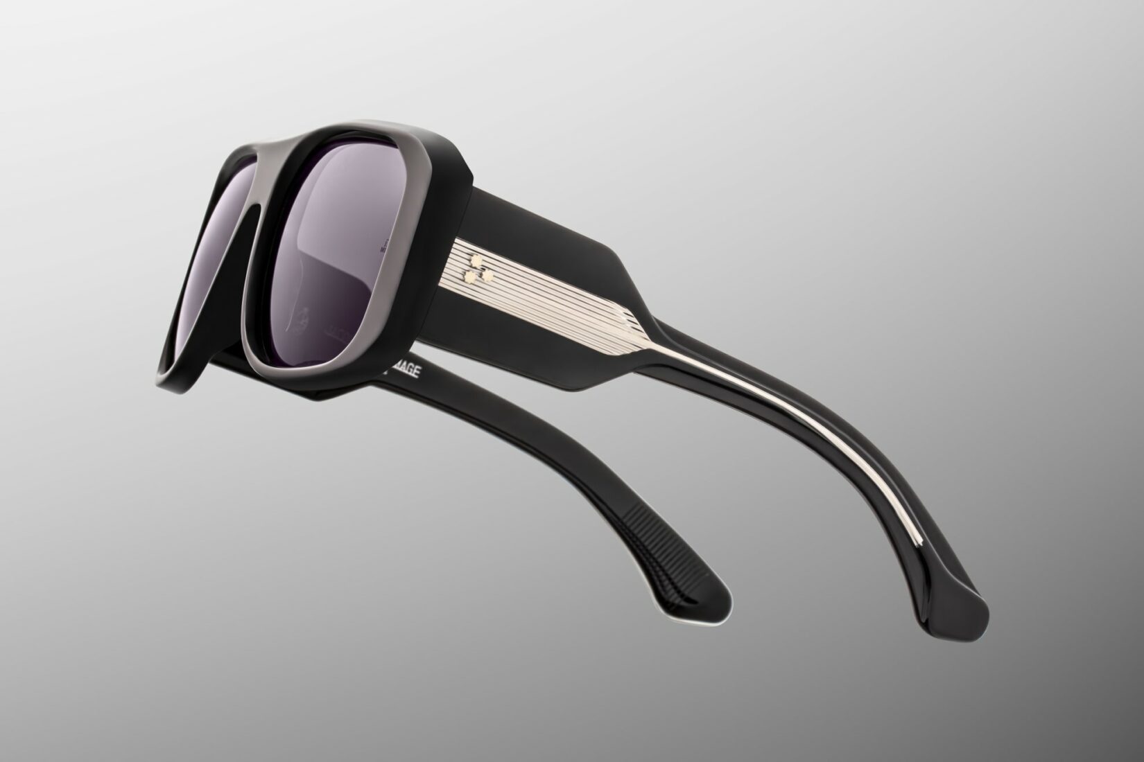 Then come the details. Exposed canoe wirecores, plated in silver palladium, reveal refined hairline engravings. Custom 7-barrel hinges ensure strength and smooth movement. Spur-shaped rivets reinforce durability. Finally, Armorlite 6-base jet lenses provide clarity, comfort, and full UV protection, enhanced by backside anti-reflective treatment.