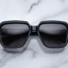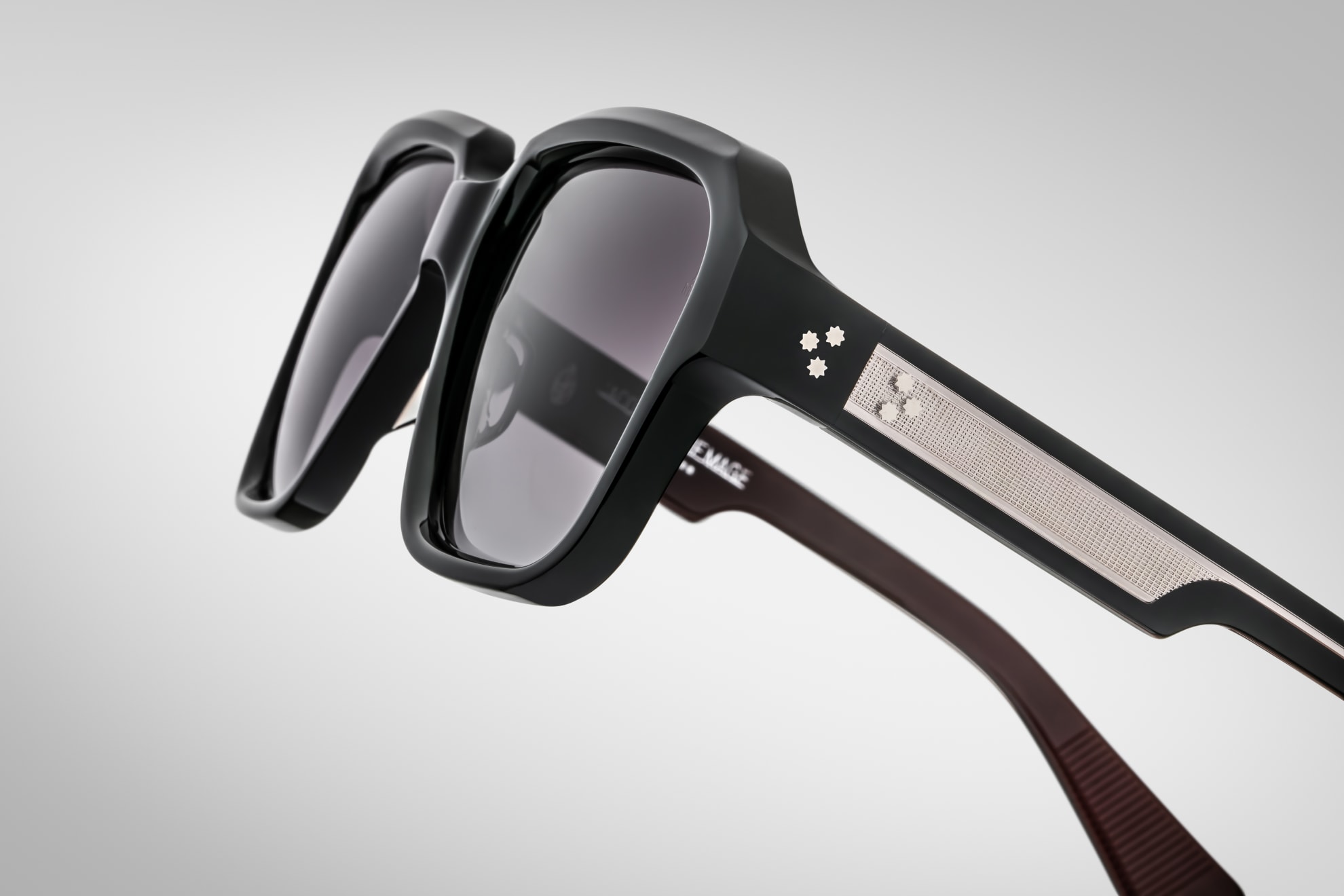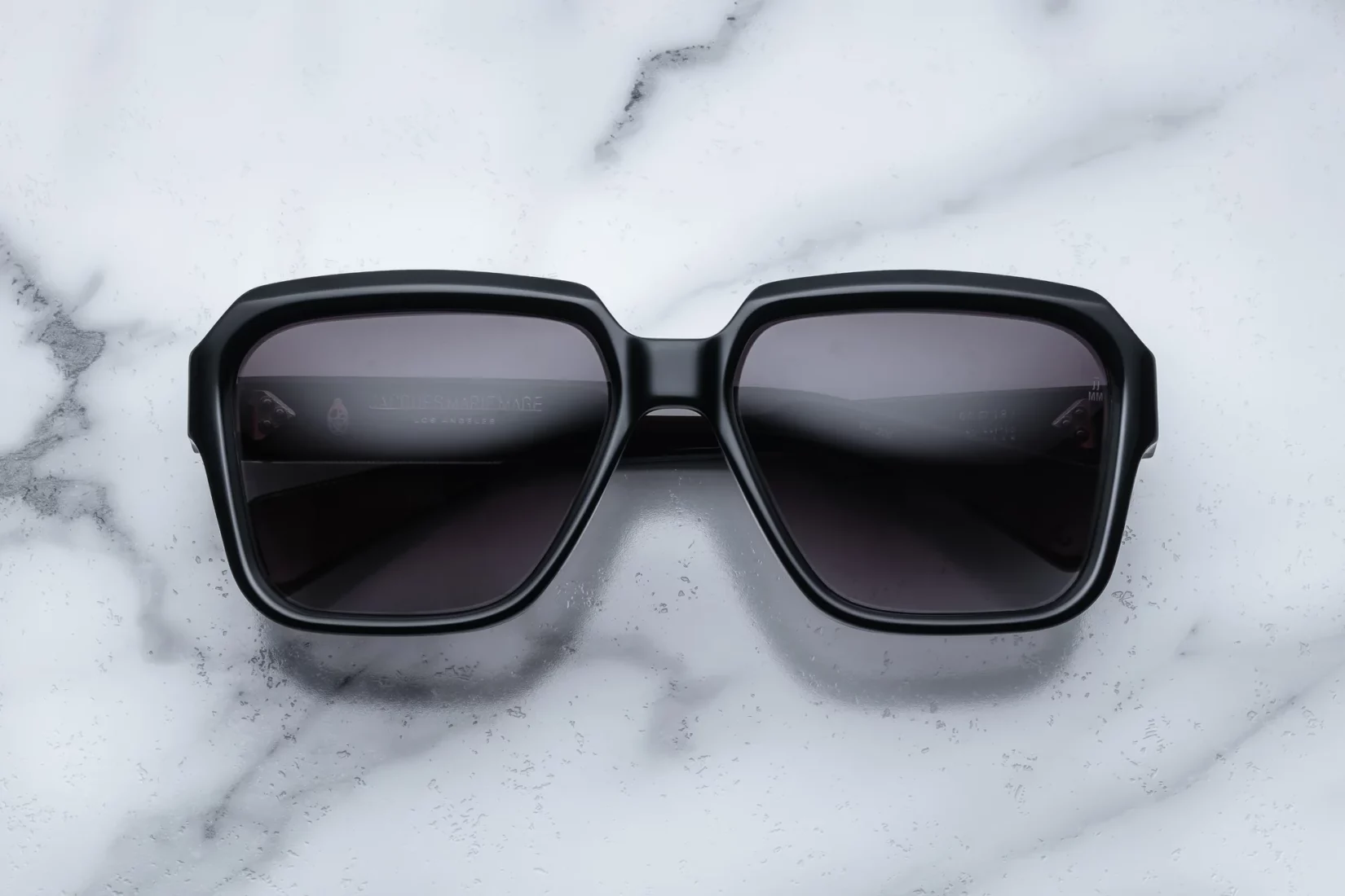Bold sculptural sunglasses handcrafted in Japan from black acetate with silver wirecore and Jet Gradient CR39 lenses. Limited to 300 pieces worldwide.