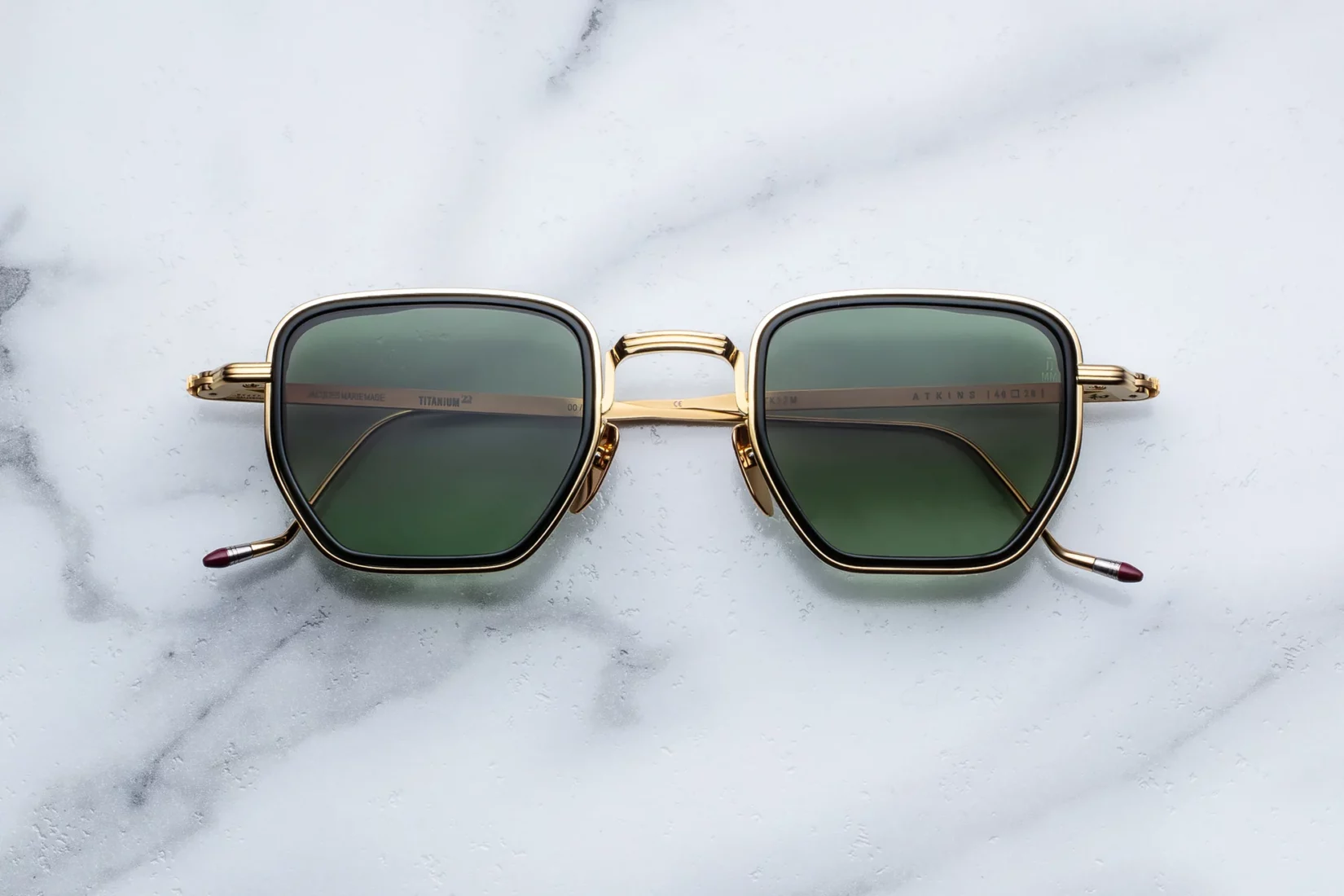 Atkins in Musket by Jacques Marie Mage is a limited-edition titanium frame with a subtle angular silhouette. Featuring a 10mm acetate eyering insert, grooved temples, and Moss gradient CR39 lenses with anti-reflective treatment. Limited to 350 pieces worldwide. Precision, character, and exclusivity combined.