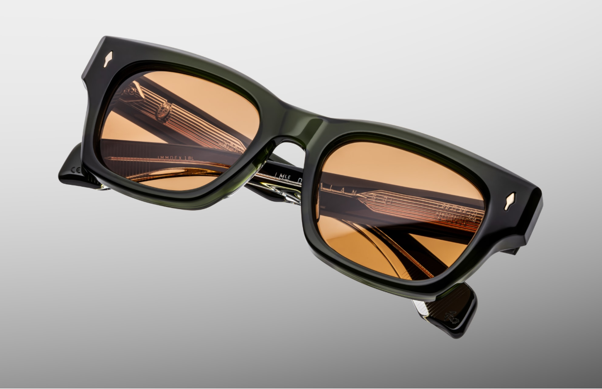 A bold reinterpretation of 1960s rock ‘n’ roll aesthetics, the Dealan 53 blends sharp lines, bold volumes, and signature metal details for a timeless statement. Handcrafted from 10mm Borneo cured acetate, it features silver arrowhead pins, exposed wirecore, and a custom 7-barrel hinge. The orange CR39 lenses offer 100% UV protection with an anti-reflective coating for superior clarity.