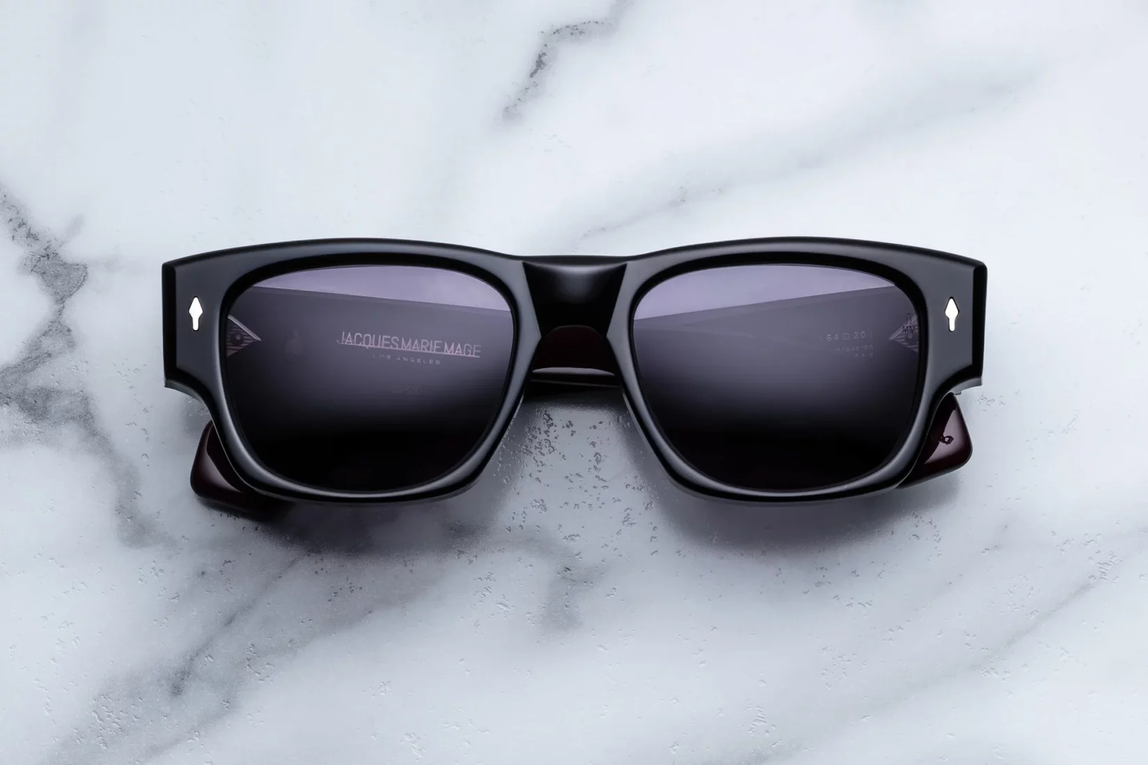 Handcrafted in Japan, the Dino features signature silver palladium arrowhead front pins, custom 9-barrel hinges, and exposed Barber wirecores plated in silver palladium. Spur-shaped rivets and foil-stamped inner-temple hallmarks add refined sophistication. Each frame reflects meticulous attention to detail, combining expressive style with technical mastery. The sculptural brow and tiered temples demonstrate Jacques Marie Mage’s dedication to wearable art, where every element is purposeful and precise.