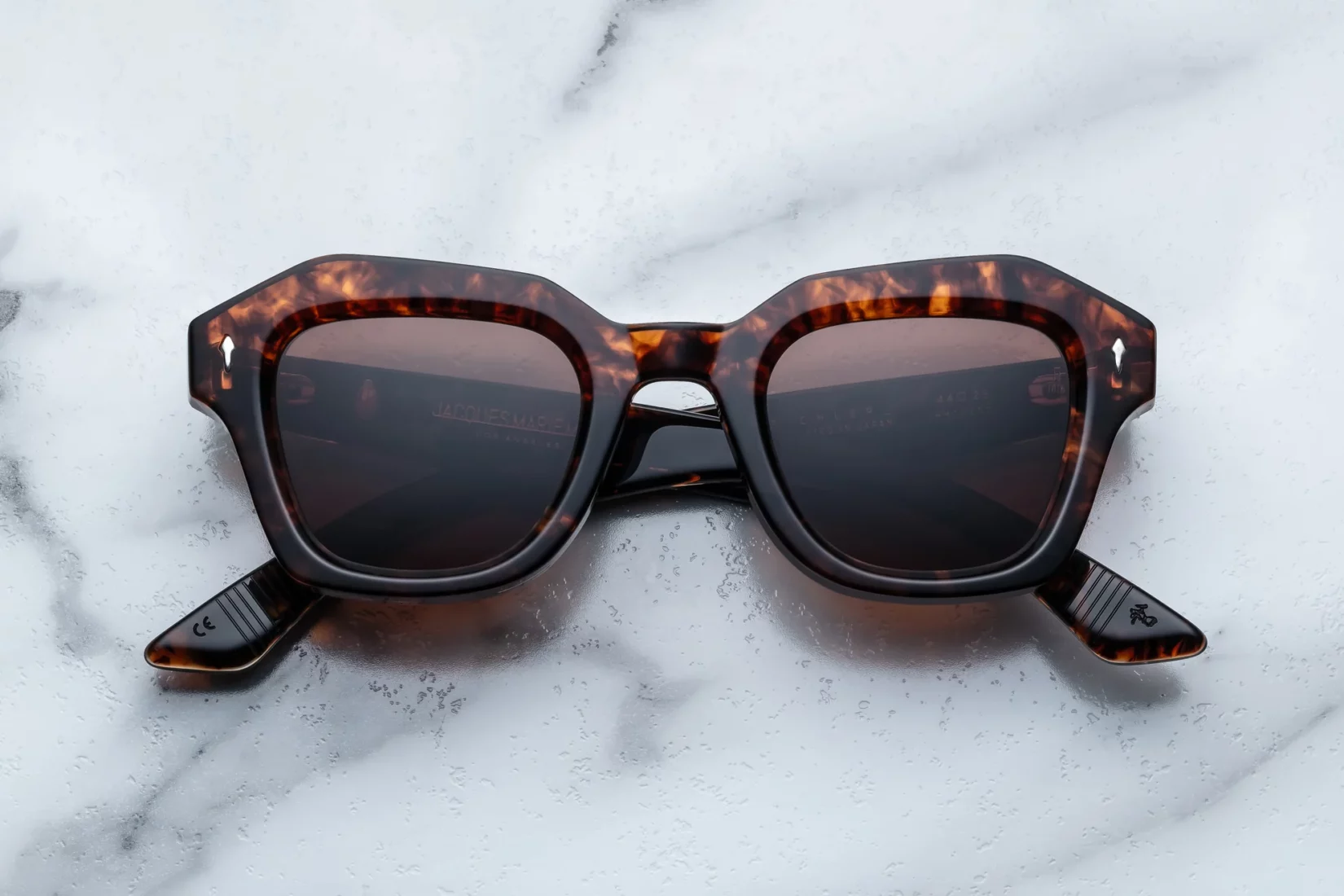 Handcrafted in Japan, the Eichler showcases Jacques Marie Mage’s uncompromising standards. The frame is cut from 10mm cured havana cellulose acetate. It feels substantial yet perfectly balanced on the face. In addition, custom double-laminated temples add depth and visual contrast. Polished precious metal hardware elevates every detail. Sterling silver arrowhead front pins signal the brand’s signature craftsmanship. Inside, an exposed silver “Lever” wirecore reinforces the structure while remaining discreet. Custom silver ball hinges ensure smooth movement and long-lasting durability. Finally, sienna CR39 lenses provide clarity and comfort, enhanced by backside anti-reflective treatment and full UV protection.