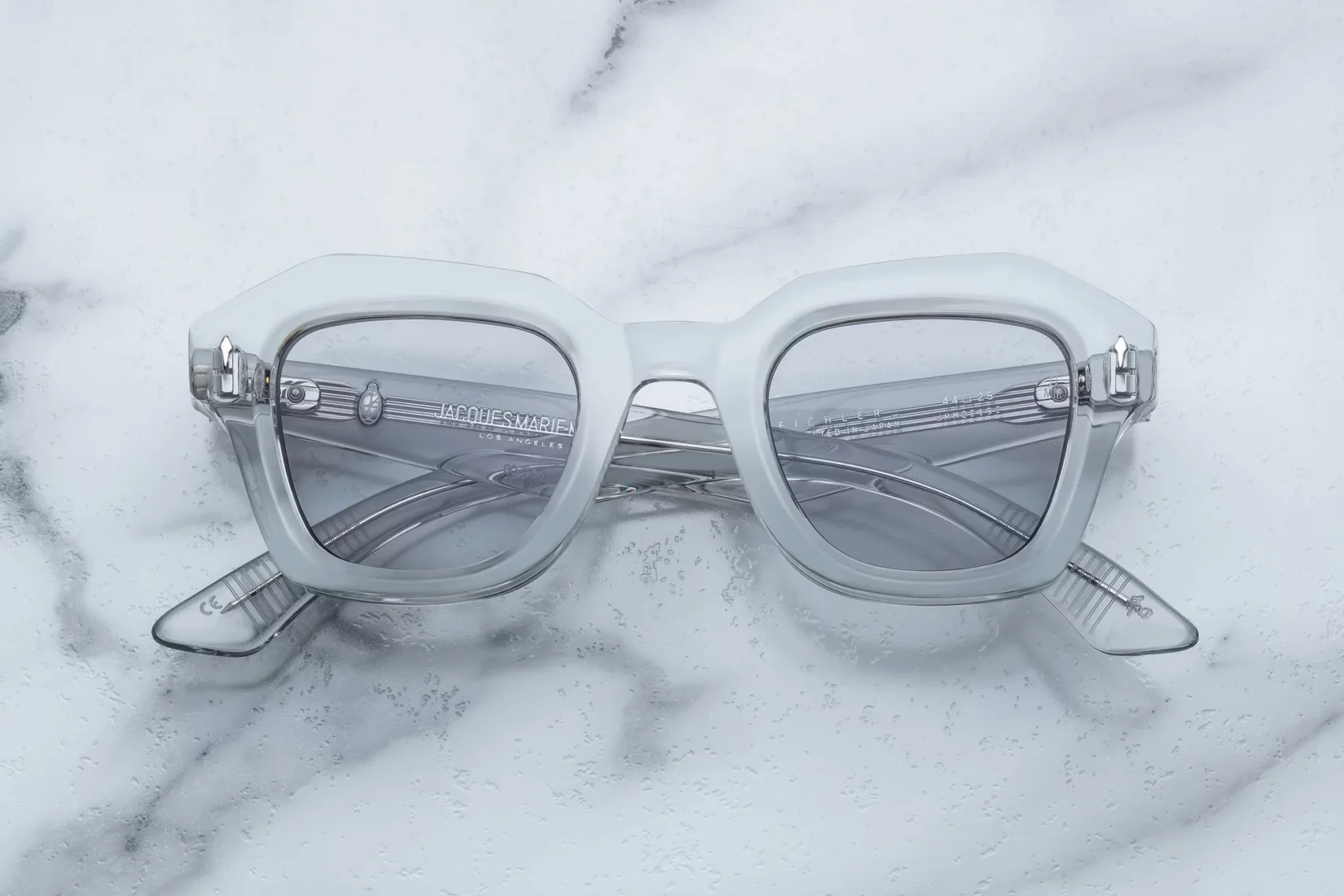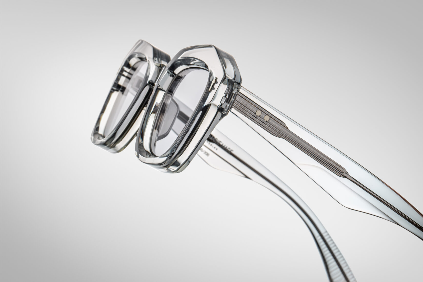 Handcrafted in Japan, the Eichler showcases Jacques Marie Mage’s uncompromising standards. The frame is cut from 10mm cured grey cellulose acetate. It feels substantial yet perfectly balanced on the face. In addition, custom double-laminated temples add depth and visual contrast. Polished precious metal hardware elevates every detail. Sterling silver arrowhead front pins signal the brand’s signature craftsmanship. Inside, an exposed silver “Lever” wirecore reinforces the structure while remaining discreet. Custom silver ball hinges ensure smooth movement and long-lasting durability. Finally, dove CR39 lenses provide clarity and comfort, enhanced by backside anti-reflective treatment and full UV protection.
