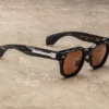 Along the temples, polished silver metal inlays display the brand’s distinctive Art Deco-inspired linework, introducing both elegance and structure. Custom 9-barrel hairline hinges, tension-secured in sterling silver, provide exceptional durability and smooth articulation.