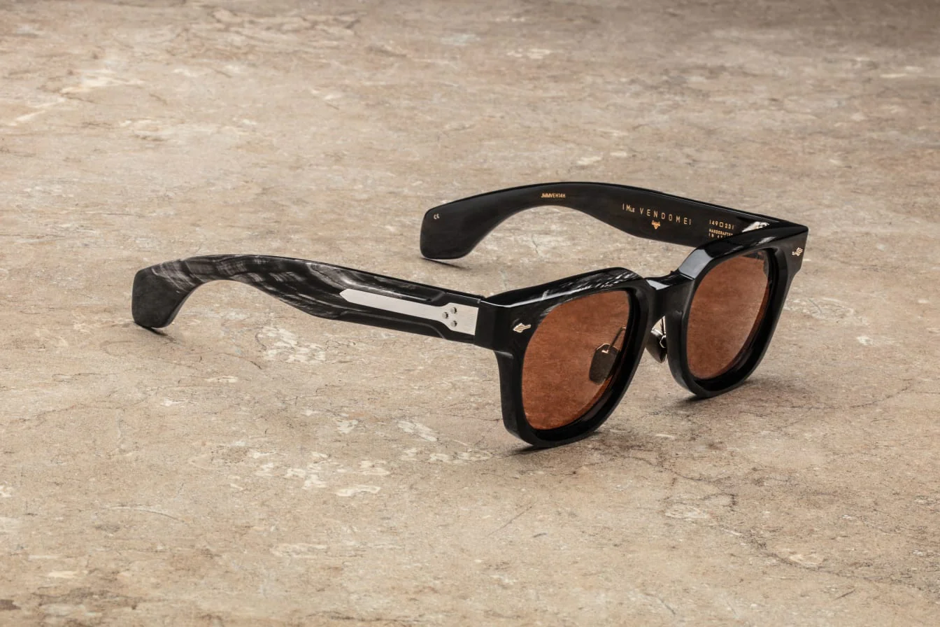 Handcrafted in Italy, the Vendome in Sequoia showcases a 10mm brown buffalo horn frame and temples, carefully shaped to reveal the material’s organic texture and richness. Signature sterling silver hairline arrowhead front pins anchor the design with unmistakable Jacques Marie Mage identity.