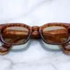 The Whiskeyclone is a bold nod to the early ’90s, designed with a medium-sized, rectangular frame that offers substantial volume and distinctive presence. Crafted from 10mm polished cured cellulose acetate, this piece combines modern design with retro sensibilities. Custom double-laminated acetate temples and silver hardware complete the refined aesthetic, making these frames a standout in any collection.