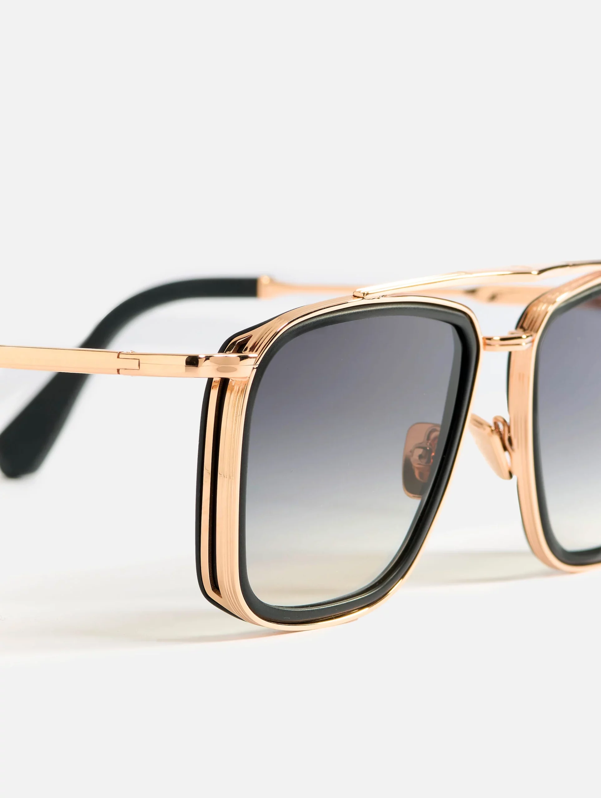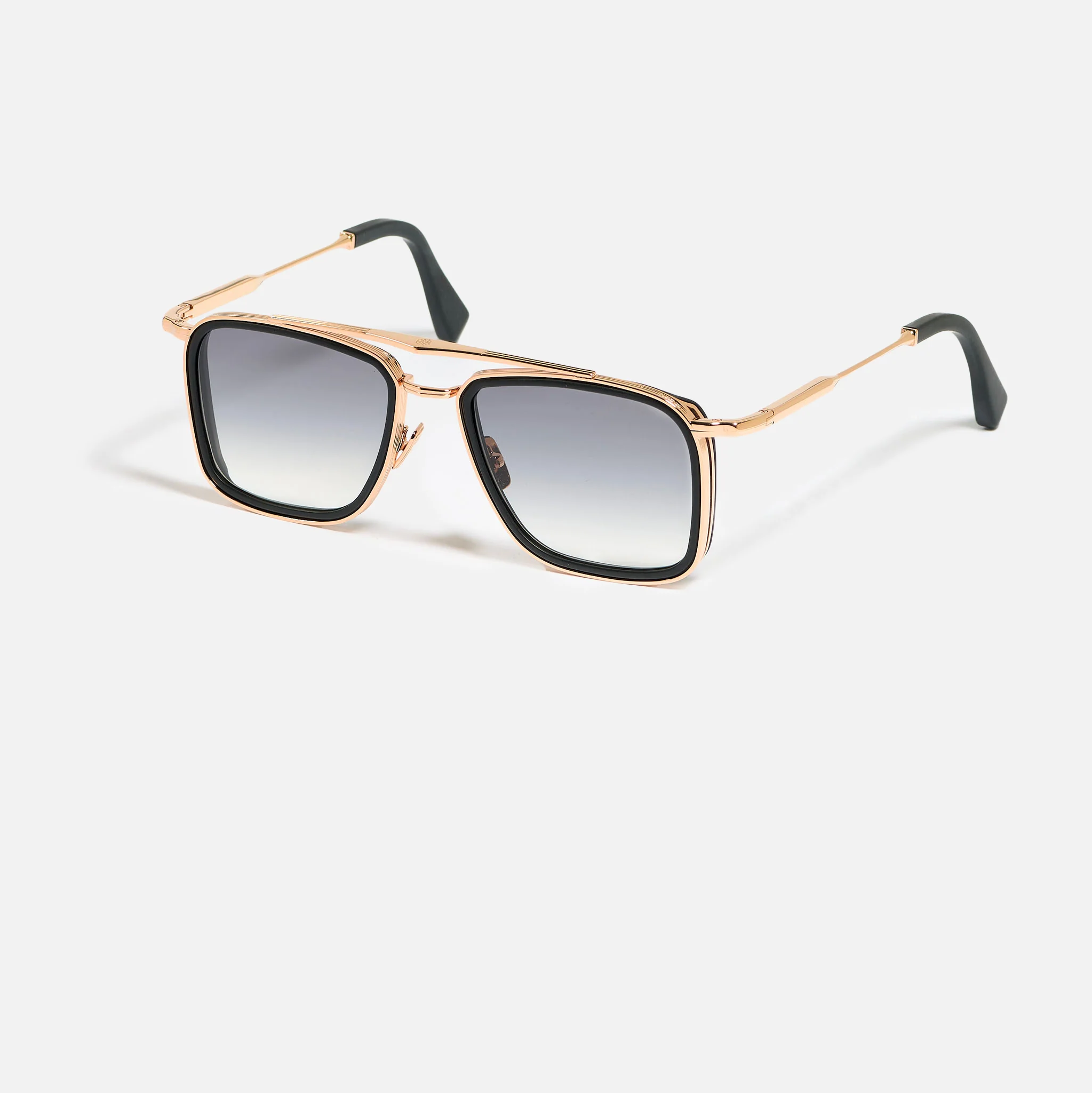 The Samuel C303 features a distinctive graphic shape, with rims meticulously carved from a 4mm engraved metal strip. This square frame is brought to life by our innovative geometric bridge and traditional end pieces, creating a harmonious balance of modernity and timeless appeal. Crafted from shiny black acetate and an alloy frame treated with a carbon black layer, the frame is accentuated with rose gold plated nose pads, adding a touch of opulence. The 5µ layer and jewelry stamp inside the temple further highlight its luxurious nature.
