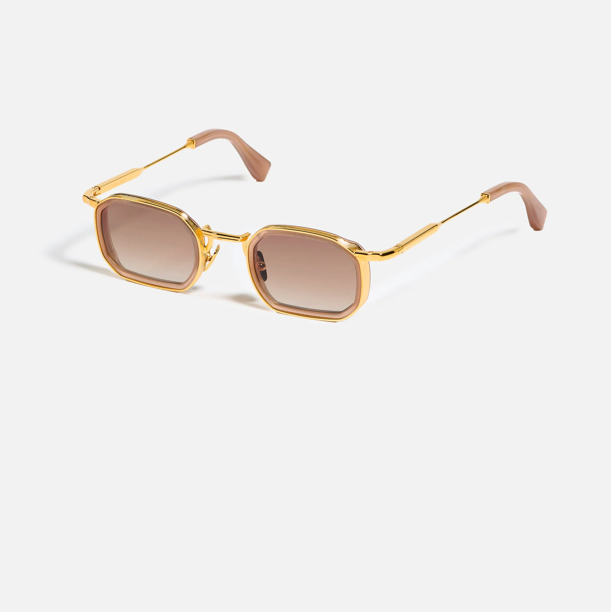 The Samuel C194 frames feature a distinctive graphic shape, with rims expertly carved from a 4mm engraved metal strip. The design is further enlivened by our innovative geometric bridge and traditional end pieces, adding a touch of modern flair to its timeless silhouette. Crafted from luxurious almond acetate and adorned with a 22-carat yellow gold plated alloy frame, each piece boasts a 5µ layer and a jewelry stamp inside the temple, exuding opulence and exclusivity.