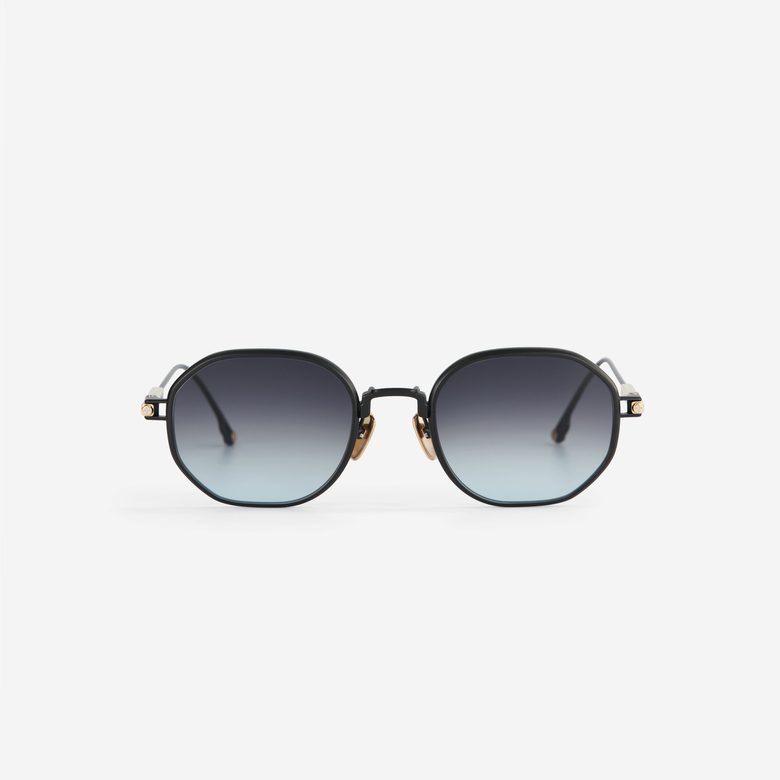 Black matte and Lunar gold titanium frame with custom temple and grey gradient lens.